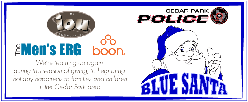 Blue Santa - 2025 We’re excited to celebrate the season of giving by partnering with the Riata Men’s ERG and The Boon Group to support the Cedar Park Police Department’s Blue Santa Toy Drive! Together, we’re spreading holiday cheer and helping ensure that families in need can experience the magic of the season with gifts for their children. Every toy and every contribution goes directly to the Cedar Park Police Department Blue Santa Program, bringing joy to our community all season long.