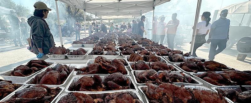 Operation Turkey - 2025 Operation Turkey is a 100% volunteer-powered organization dedicated to feeding and clothing the homeless and less fortunate in Austin and more than 20 cities nationwide. Over 40,000 volunteers work together to ensure everyone in need receives a warm Thanksgivng Day meal and a moment of kindness during the holiday. Volunteers work year-round to make this possible. IOU BBQ proudly took part in the cooking side of things on Thanksgiving eve. All efforts were focused on cooking over 1,000 turkeys. This year, Operation Turkey was able to assemble approximately 50,000 Thanksgiving Meals and deliver everything within just four hours on Thanksgiving Day.