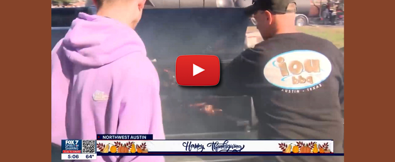 Fighting hunger and being ThankFUL! Just before Thanksgiving, the cooks of IOU BBQ® once again proudly joined forces with The Sine Die Smokers, as they cooked meals and raised funds in downtown Austin, with the common goal of fighting hunger. Following the leads of Holly, Gavin and Mace, the event brought in more than $67,000, which was awarded directly to the Central Texas Food Bank, and will help with theserving of more than 268,000 meals!